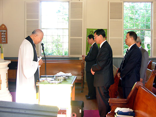 ▲2부 성찬식에서 김동렬 목사가 기도하고 있다.
