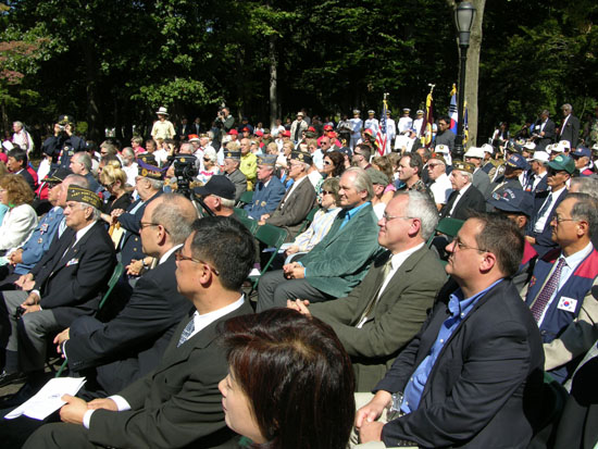 제막식에는 애드리언 베네페 뉴욕시 공원국장과 존 리우 뉴욕시의원, 앤드류 무스메시 한국전 참전군인회 회장, 헬렌마샬 퀸즈보로장, 게리 애커맨 의원, 프랭크 파다반 뉴욕주 상원의원, 김경근 뉴욕총영사 등이 참여해 기념사를 전했다.