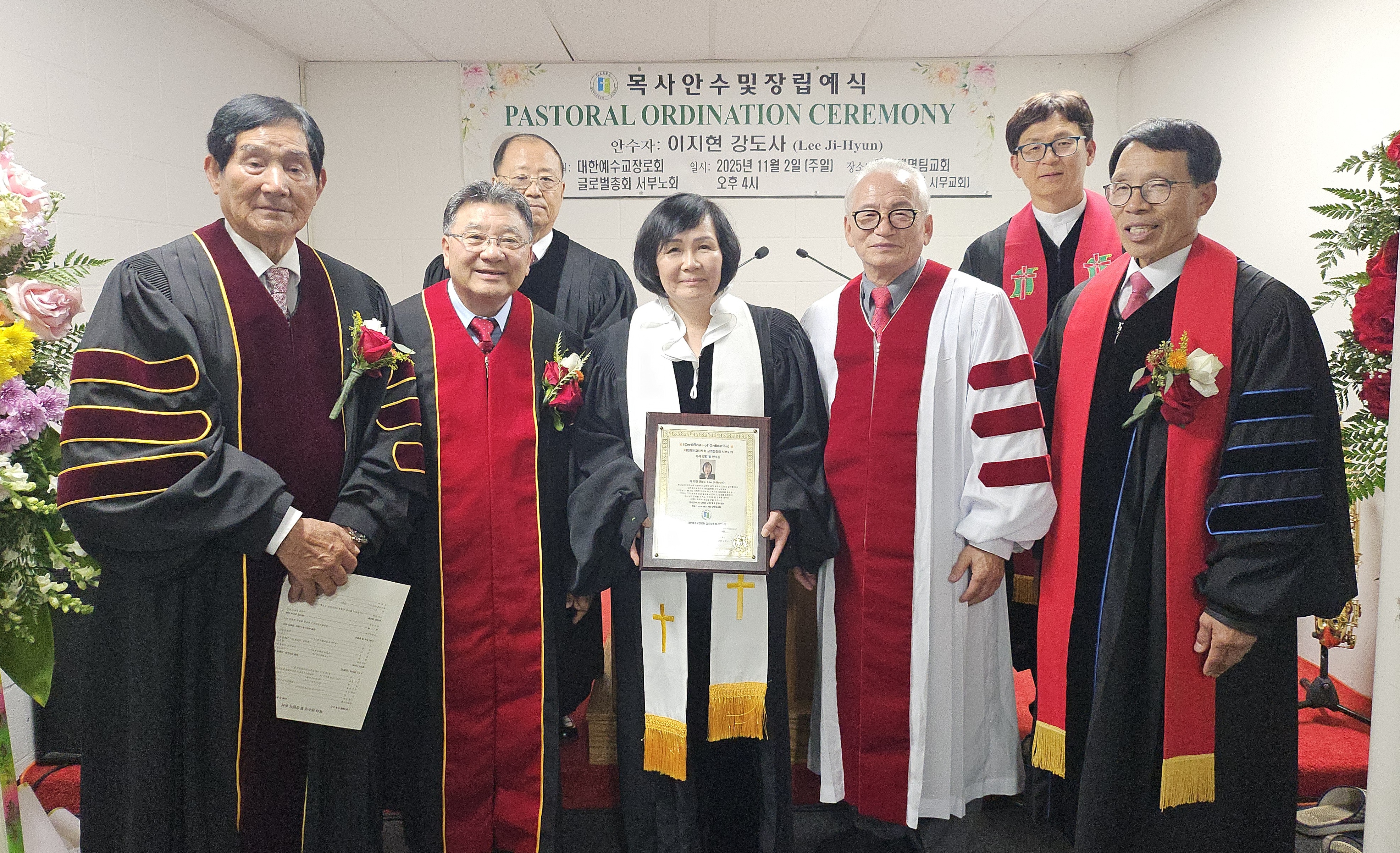 대한예수교장로회 글로벌총회(GAKPC) 서부노회 이지현 목사 안수 및 장립식이 지난 11월 2일(주일) 오후 4시 예수생명팀교회(조준석 목사)에서 거행됐다.