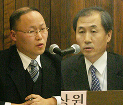 ▲‘동성애와 차별금지법’이라는 제목으로 발제한 이상원 교수(오른쪽)와 이를 논찬한 고상균 연구원.