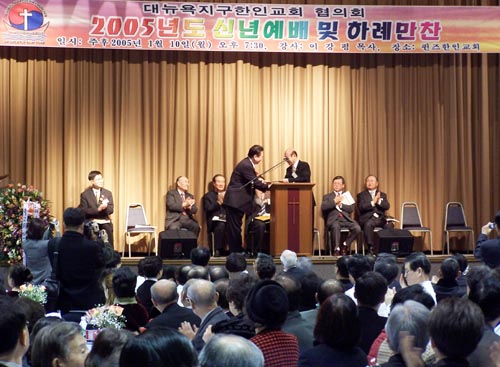 대뉴욕지구한인교회협의회 주최 2005년도 신년 예배 및 하례만찬이 1월 10일 오후 7시30분 퀸즈한인교회(한진관목사 시무)에서 열렸다. 교계 인사를 비롯한 각계 인사들이 참석한 가운데 2005년 새로운 출발을 약속하고 다짐하는 자리였다.