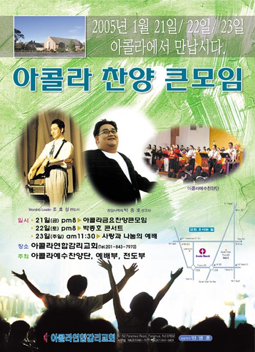 2005 년 1월 21일부터 23일까지 아콜라 연합감리교회에서 "아콜라 찬양큰모임"이 열린다.