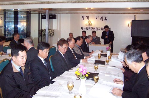 대뉴욕지구한인교회협의회 2005년도 제 19회기 정기 이사회(전반기)가 13일 저녁 8시 금강산(플러싱 점) 지하 별실에서 열렸다.