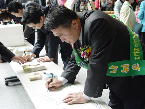 이날은 용산역 탑승대기 승객 500여명을 대상으로 장기기증캠페인을 전개했으며, 한국뇌성마비장애인연합회 류흥주 회장, 한국철도공사 신승호 서울지역본부장, 승객 10여명이 사후 각막기증에 서약했다.