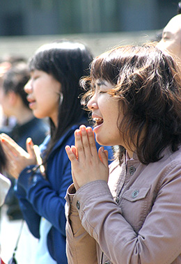 서울대 기독인들이 지난 21일 서울대 본부 앞 총장잔디에 모여서 2005년도 1학기 예수 대행진을 개최했다.