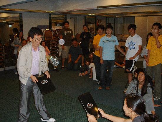 ▲추석의 전통놀이를 응용한 책받침 제기차기, 까막 잡기, 젓가락으로 알밤 담기 등의 게임도 하며 즐거운 시간을 보냈다.ⓒ뉴라이프교회