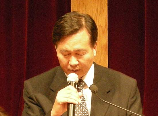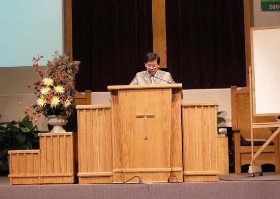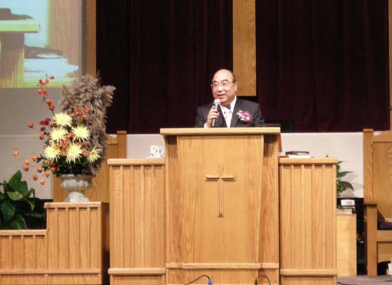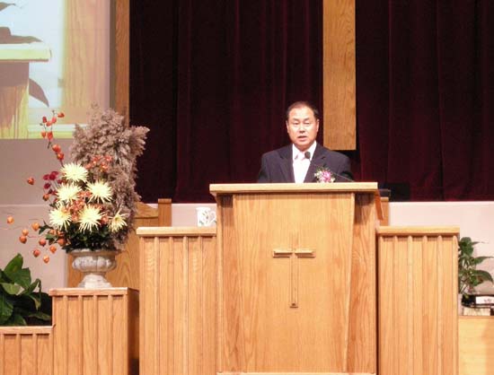 ▲오태환 목사(뉴욕전도협의회 회장)가 이왕복 목사를 소개했다. |
