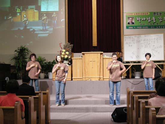 | ▲특별 순서로 새언약교회(담임 이희선 목사)에서 수화 찬양을 공연했다. |