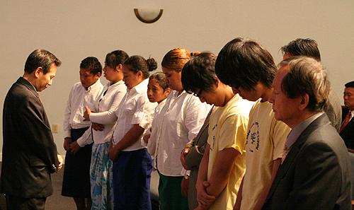 ▲마음 문을 열고 예수님을 들어오게 하라는 윌리엄 크루 목사의 설교가 끝나자 마음 문을 열고 예수님을 다시 영접하겠다는 자원자들이 앞으로 나와 안수기도를 받고 있다.