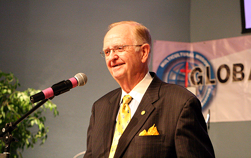 ▲골든게이트침례신학대학원 전 총장 윌리엄 크루 목사가 '누가 문을 열 것인가?(Who will open the door?)'을 주제로 설교했다.