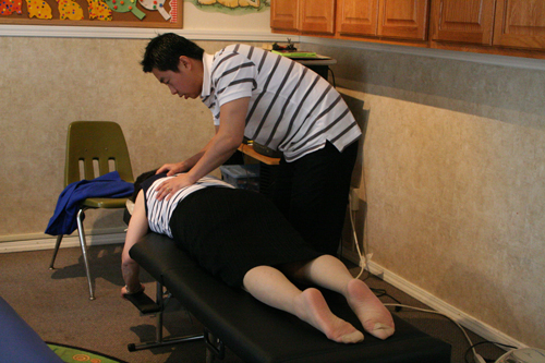 ▲특별히 아픈 분을 위해 맛사지 서비스를 실시했다.