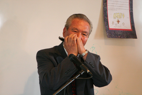 ▲하모니카 연주로 인해 노인잔치의 흥이 더해졌다.