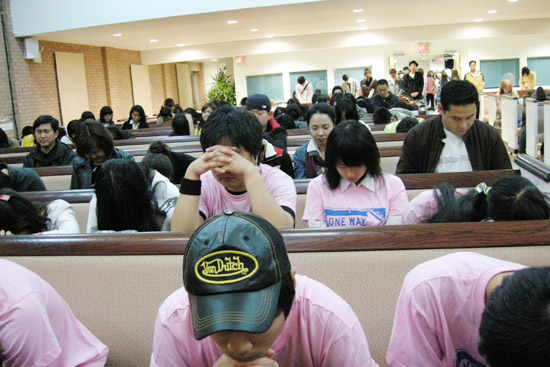 | ▲폐회 기도하고 있는 청소년들 |