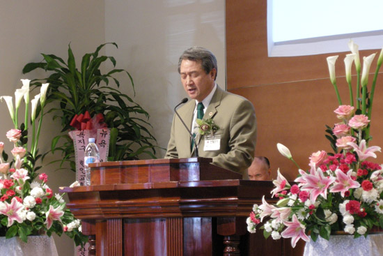 | ▲직전회장 황동익 목사가 이임사를 전했다. |