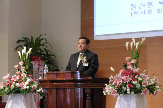 ▲정순원 목사회 회장이 축사했다.
