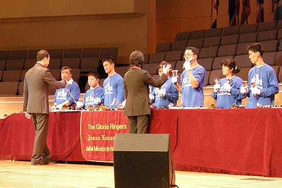▲글로리아 링어즈(Gloria Ringers)에서 핸드벨을 연주했다.
