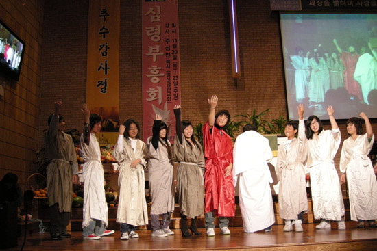1부는 열린 예배 찬양팀의 감사 찬양으로 시작해 오경수 간사(청년부)가 기도, 문석호 목사가 메시지를 전했다.