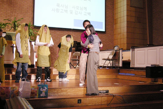 | ▲중/고등부 학생이 어머니에게 감사를 표현하고 있다. |