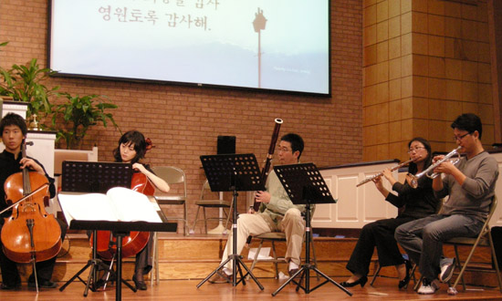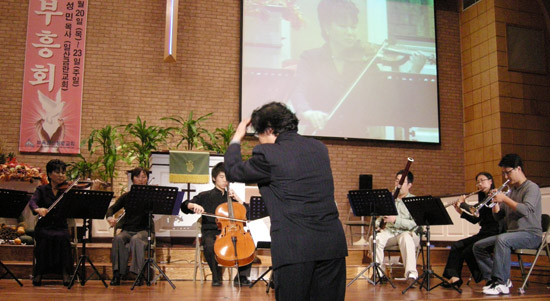 ▲효신 관현악팀이 '그리운 금강산' 외 1곡을 연주했다.