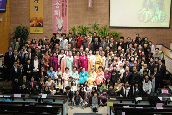 | ▲효신장로교회 성도 사진 촬영 |
