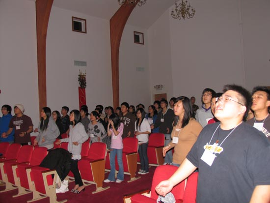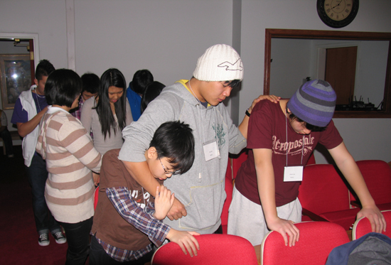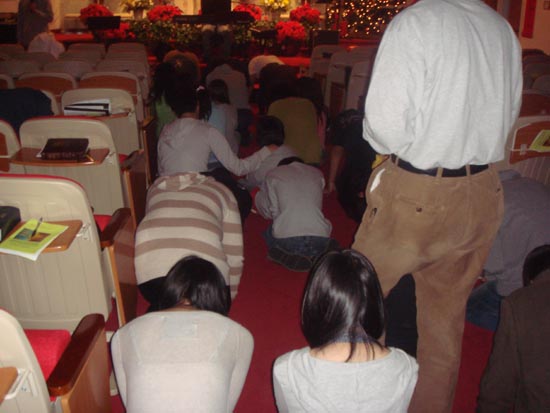 저녁 집회때는 참석한 각교회 담임 목사들이 학생 한사람 한사람을 위해 안수기도하고 학생들은 결단하며 눈물로 기도했다.