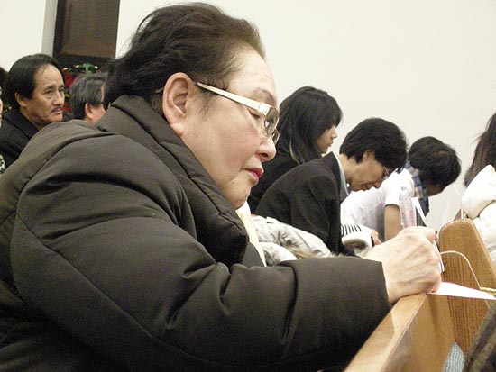 ▲2부 기도회에 앞서 2008년의 감사 제목, 과오를 되돌아보고 2009년의 결심을 적어 보는 시간이 마련됐다.