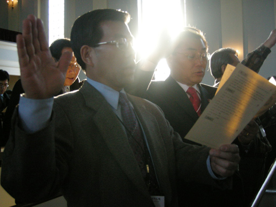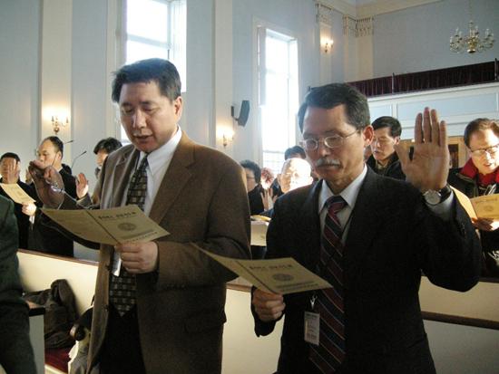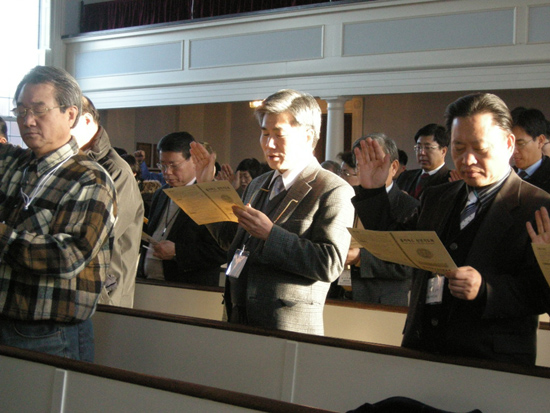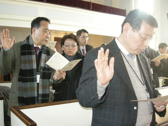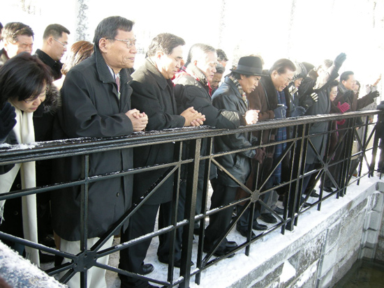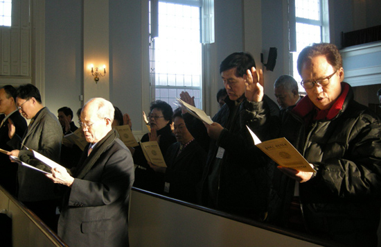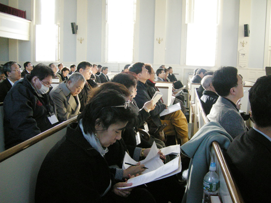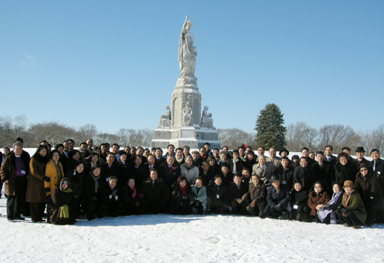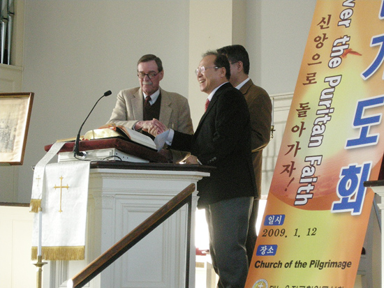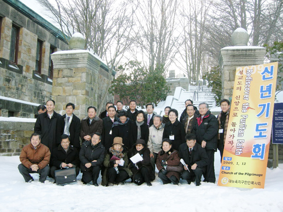 대뉴욕지구한인목사회(회장 송병기 목사)는 지난 12일 보스톤 플리머스 락(Plymouth Rock) 및 필그림교회(Church of the Pilgrimage)에서 신년기도회를 개최했다. 이 날 행사는 새벽 5시 30분 순복음뉴욕교회(담임 김남수 목사)에서의 새벽기도회로 시작해 National Monument to the Forefathers 기도회, 플리머스 락(Plymouth Rock) 기도회에 이어 필그림교회(Church of the Pilgrimage)에서 강의와 선언문 낭독 및 기도회의 일정으로 진행됐다. 뉴욕목사회 회장 송병기 목사는 "새벽 기도회부터 하나님께서 동행하시는 아름다운 시간을 갖게 해주신 것을 감사드린다"며 "102명의 참가자들이 성수 주일 등 모든것을 하나님의 것으로 드리며 Lordship을 인정하며 살았던 청교도와 같이 몸소 살아서 하나님의 영광을 위해 쓰임받는 믿음의 사람이 되기를 바란다. 또한 이 정신을 깨달은 102명이 하나님의 은혜와 능력을 전하는 기폭제가 될 것이다. 우리 민족을 통해 새롭게 청교도 정신으로 돌이키실 것이다"고 전했다. 이 날 참가자는 102명으로 1620년 플리머스에 도착한 청교도 102명의 수와 같은 수가 참여해 의미를 더하기도 했다.