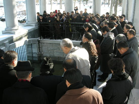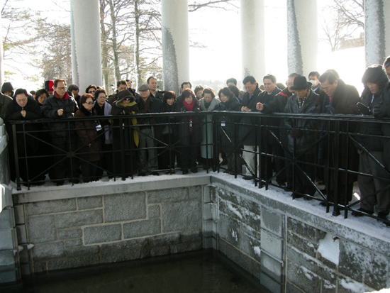 ▲필그림교회 옆 '묘지가 있는 언덕'이라는 뜻의 베리얼 힐 앞에서 기념 사진을 촬영했다.