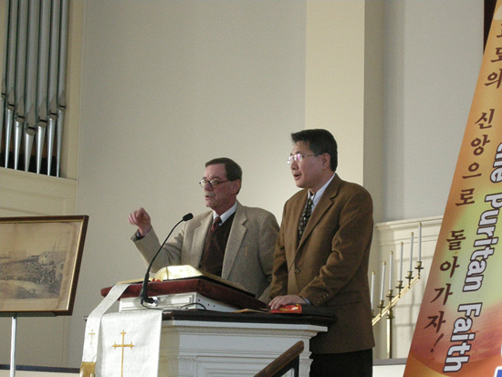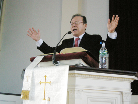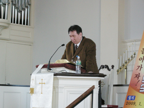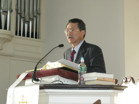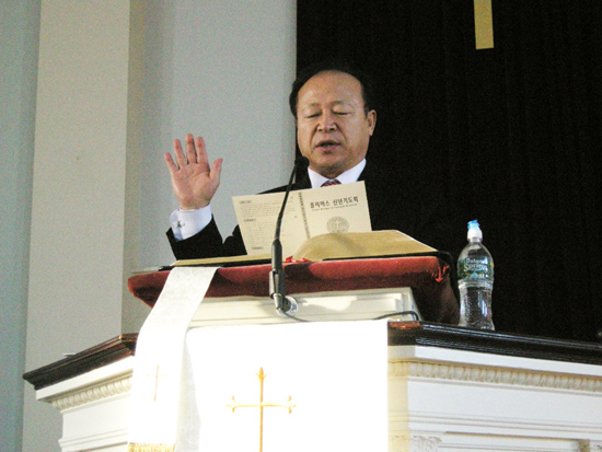 ▲필그림 교회 담임 목사가 나와 교회 소개를 했다.