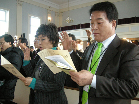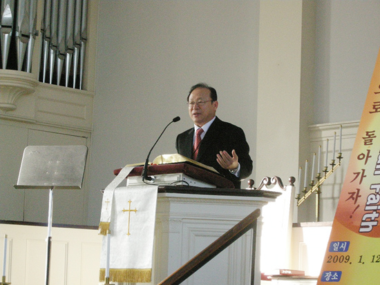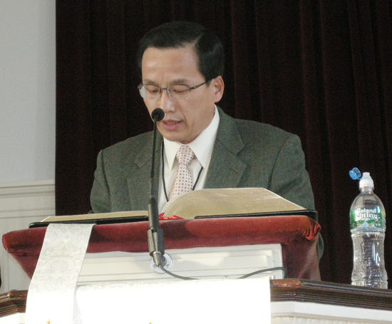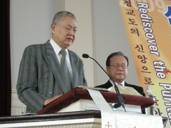 ▲이희선 목사가 선언문을 영어로 낭독했다.