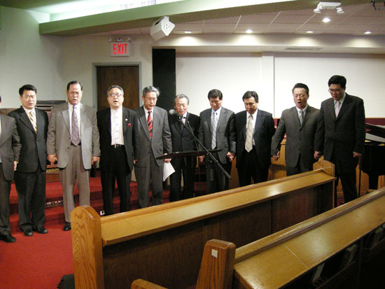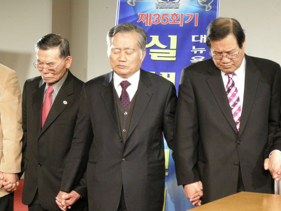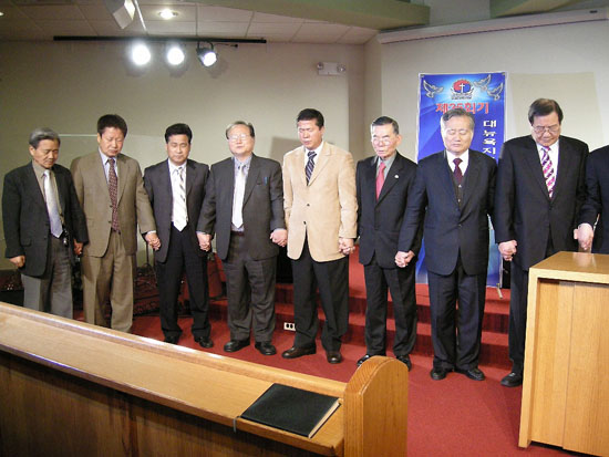 ▲회무 처리가 끝난 후 합심 기도하는 시간을 가졌다. 뉴욕교협 회장 최창섭 목사