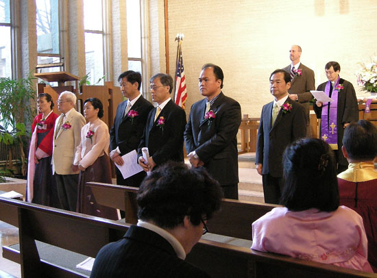 행사는 1부 예배와 2부 임직식으로 진행, 예배는 황남덕 목사(EM 담당)의 인도로, 김승환 학생이 성경봉독, 데이빗 알드리지 목사(United Methodist Church of Port Washington)가 설교, 박성천 집사가 헌금특송 했다.