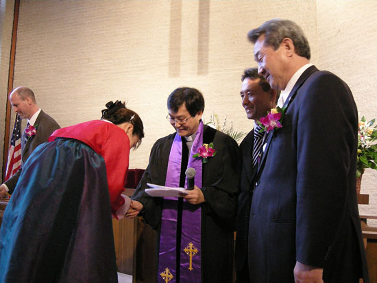 이어 임직식은 롱아일랜드한인교회에서 성전으로 사용하고 있는 United Methodist Church of Port Washington의 당회장 데이빗 알드리지 목사의 집례로 진행됐다. 통역은 황남덕 목사가 맡았다.