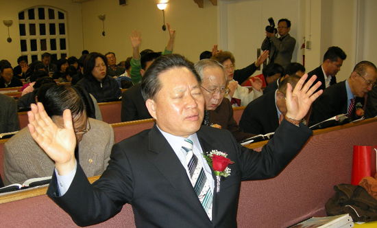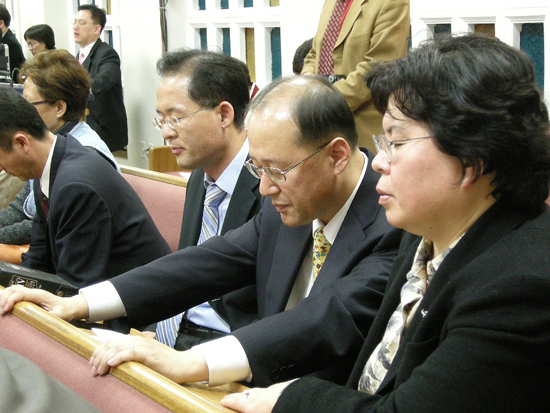 | ▲순복음세계선교회 북미 총회 동북부지방회장 목동주 목사(오른쪽에서 두번째) | |