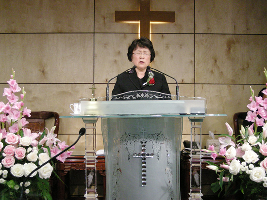 | ▲뉴저지순복음안디옥교회 이은혜 목사가 헌금기도했다 | |