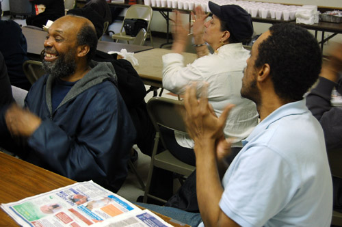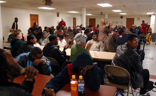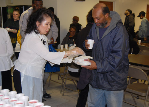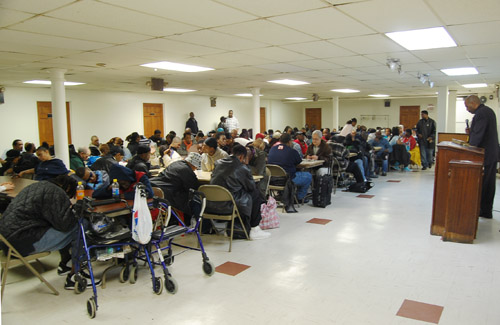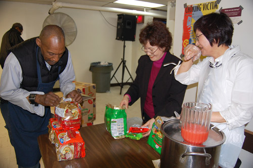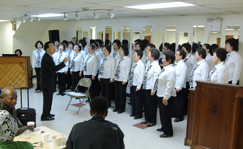 5월 5일에는 뉴욕권사합창단이 할렘을 찾았다. 50여명의 권사들은 10곡이 넘는 찬양을 찾아온 이들에게 선사했다. 음악에는 국경이 없다고 했던가. 대부분 한국어 찬양이었지만 매 곡이 끝날 때마다 받은 감동을 박수로 표현했다. 찬양 후 바로 이어진 식사 시간, 권사들은 재빠른 손놀림으로 줄서서 기다리는 손님들에게 햄버거와 초코바를 나눠주며 또 한 번 실력을 드러냈다. 월말 정부에서 주는 웰페어를 받으면 월초에는 덜 붐빈다고 하지만 오늘은 월초임에도 불구하고 많은 사람들이 모여들었다.