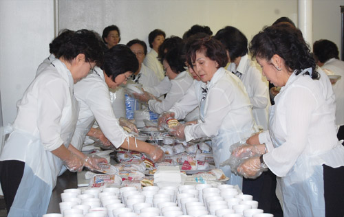 | ▲뉴욕권사합창단은 5일 할렘을 찾아 브니엘선교회와 점심을 대접했다. | |