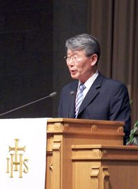 대회 첫날 연합집회에서 후러싱제일교회 김중언 목사는 신명기 28장9절에서 14절에 근거해 “하나님의 성민의 특권”이란 제목으로 설교했다. 김 목사는 “하나님의 성민이 누구이고 교회의 지도자가 누구인가? 바로 여러분이다”라고 설교를 시작했다.