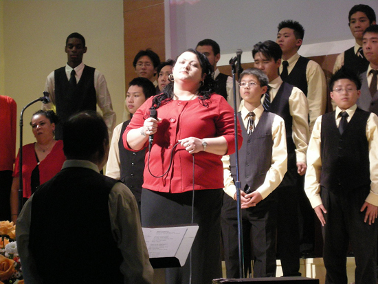| ▲중국, 태국, 도미니카, 필리핀, 타이완, 흑인, 히스패닉 등 다민족 회중들이 힘있는 찬양을 선보였다. | |