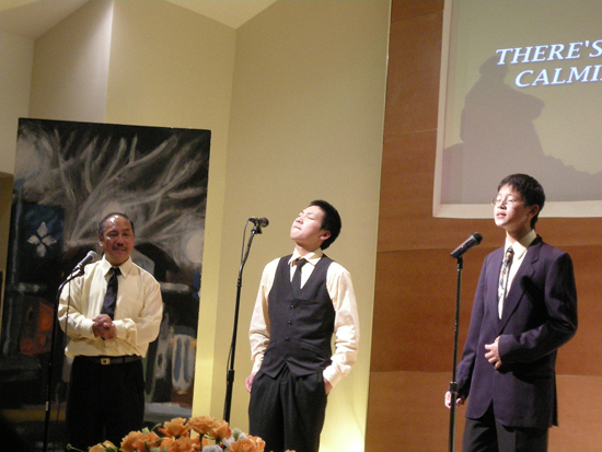 | ▲(가운데)제리 호(Jerry Ho) 형제와 (맨 오른쪽)마이클 량. (맨 왼쪽)버질 마카렉의 공연 | |