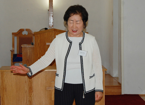 | ▲창립총회에서 시작기도를 하고 있는 신인화 목사 | |