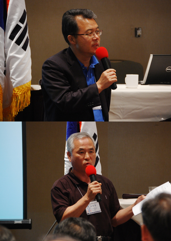 | ▲부총회장 선출 전 정견발표하는 정인수 목사(위)와 심평종 목사(아래) | |