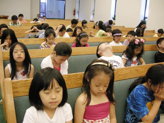 | ▲기도하고 있는 유년부. 초등부 어린이들 | |