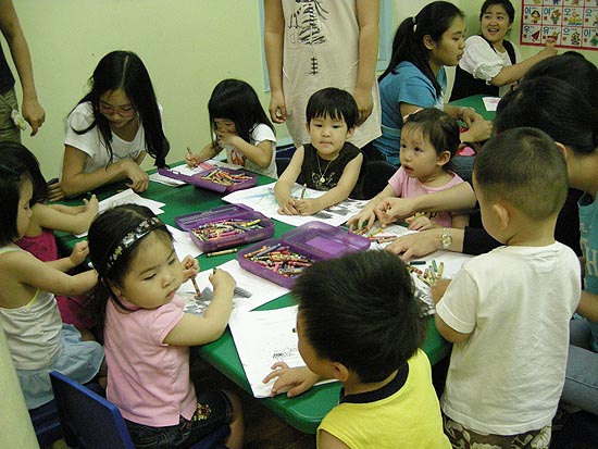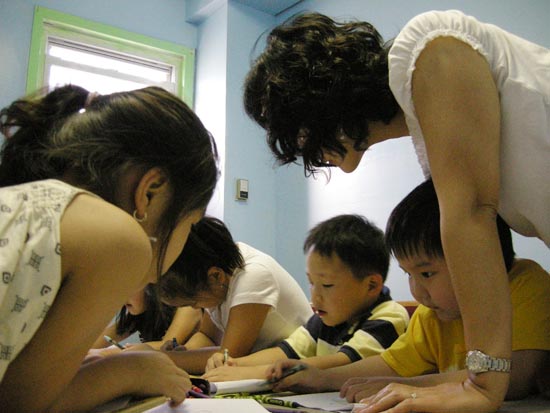 | ▲그림에 색칠하고 있는 어린이들 | |