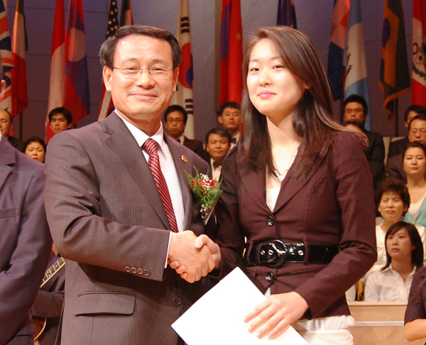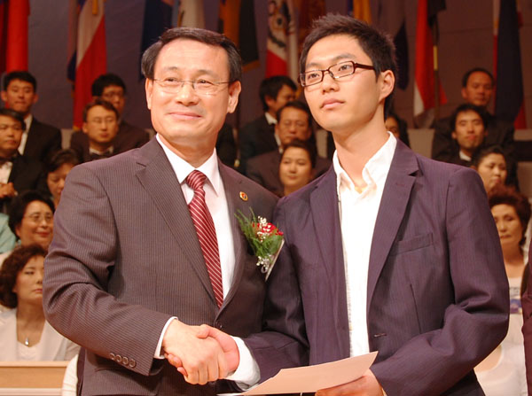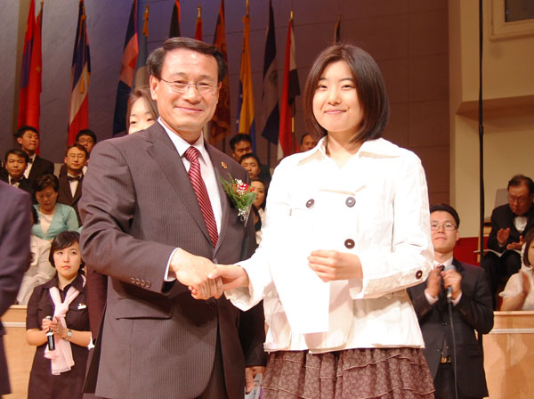 뉴욕교협은 할렐루야대회 둘째날 장학금 전달식을 가졌다. 최창섭 목사는 이날 대표로 나온 3명의 학생들에게 장학증서를 전달했다.