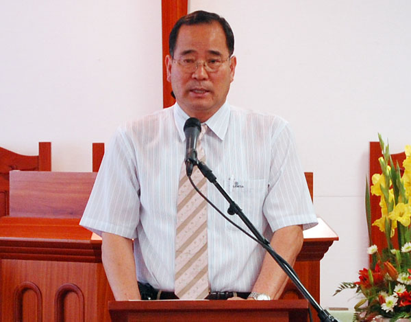 | ▲목회자 가족 수양회 등록에 협조해 줄 것을 당부하는 노기송 목사 | |