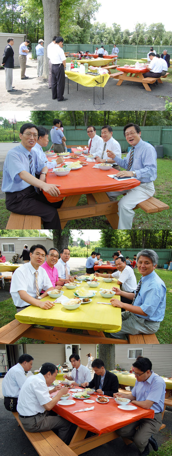 | ▲교회 마당에서 뉴욕한신교회가 준비한 음식과 식탁 교제를 나눈 목회자들. | |