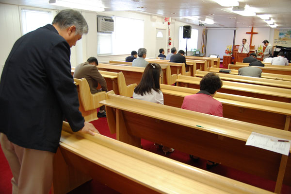 | ▲회의는 허걸 목사의 마무리 기도로 끝났다. | |