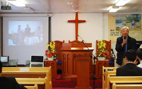 | ▲중국단기선교에 대해 보고하는 장길준 목사 | |