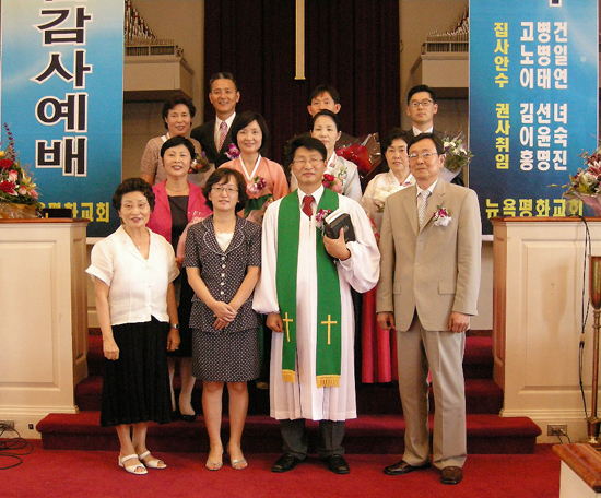 뉴욕평화교회(담임 임병남 목사)는 26일 12시 창립 18주년 기념 예배 및 안수집사. 권사 임직식을 가졌다.